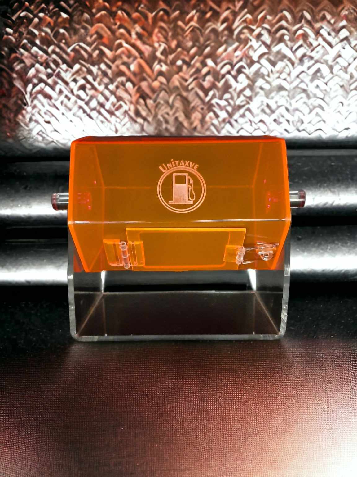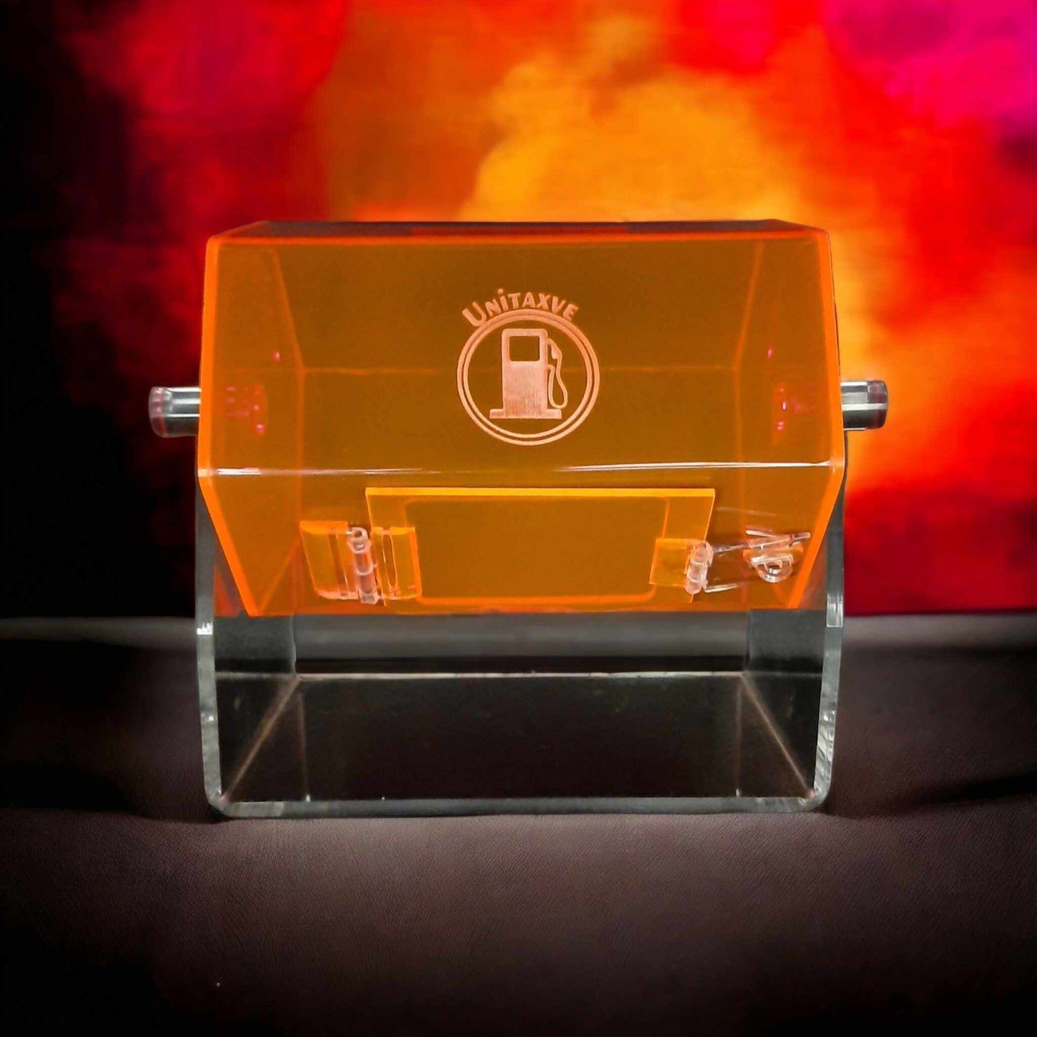 Tómbola de acrilico fluorescente, en naranja y verde ideal para oficinas y eventos